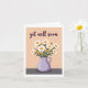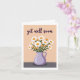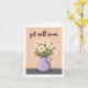 Send your loved one a warm and cheerful greeting card to help brighten their day. Picture a digital illustration of a lovely bouquet of white daisies with bright yellow centres, accompanied by yellow flowers and green stems, all nestled in a delicate light purple vase. These flowers sit on a dark grey surface, adding a subtle contrast to the soft peach-coloured background. At the top left of the image, the words "get well soon" are written in a handwritten-style font in a soothing dark purple hue. This card exudes a sense of comfort and well-wishing, perfect for sending healing thoughts and positive vibes to someone special. 🌼💜