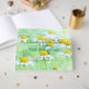 Cheerful white and yellow daisies bloom in a field of green for a guest book for your wedding. An elegant script font in dark mint lists the full names of the couple, which a contrasting smaller font is used for the wedding date and the location of the wedding. Remember to substitute your information on the spine for a truly unique guest book for your event