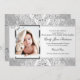 Pretty Damask & Cross Silver Photo Baptism Invite