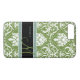 Pretty Dark Olive Green & white damask w/ monogram Case-Mate iPhone Case