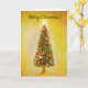 Pretty Decorated Christmas Tree Gold Light Holiday Card