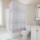 An elegant designer shower curtain with a decorative pattern in the latest colour of the year 2016 - rose quartz pink and serenity blue.