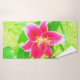 Pretty Deep Pink Stargazer Lily on Lime Green Bath Towel