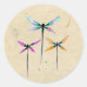 Pretty original watercolor illustration of cute dragonflies in different colours against a rustic background.