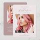 This pretty dusty rose two photo graduation party invitation features a beautiful script font, and front photo, with party details and a second photo on the back.