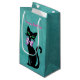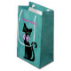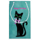 This gift bag is a pretty teal colour with a pretty elegant sitting black cat with big green eyes wearing a pink bow around its neck. Customise your text with the template.