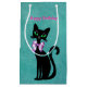 Pretty Elegant Black Birthday Cat Green Eyes Bow Small Gift Bag
