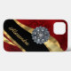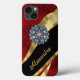 Pretty chic and elegant girly dark red vintage damask pattern design, with a crystal rhinestone jewel bling and black and gold swirl ribbon pattern graphic with personalised with her name or monogram initials to the customisable text templates to create a special unique stylish case to protect your device. This chic elegant sophisticated feminine red retro damask graphic design, would be great for women who like romantic red and jewellery easily add your own name or text to the stylish elegant colour ribbon template. Visit the CUSTOMIZEDSKINS STORE for matching cases. PLEASE NOTE the golden colour is not metallic, and does not contain real diamonds or crystals.