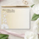 This Pretty Posy collection is simple & elegant. This fully customisable collection features a white faux embossed flower with delicate swirling vines. These striking, A7 envelopes will set the tone beautifully for your romantic wedding or any special event. Use the orange "Customise It" button above to insert your own text. This set contains: 5.25" square invitation with matching envelopes, coordinated A7 envelopes, 5.5x7.5" menu, 4x9" tea length wedding program, address labels, RSVP card, postage stamps and a flexible save the date photo magnet.
