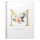 Pretty Faux Gold Foil Floral Letter M Monogram Notebook