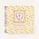 Pretty and feminine recipe book design features light peach coloured background with stars, centre graphic of pink floral heart and key, and customisable text box for name or other special message.