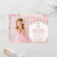 Pretty First Holy Communion Rose Gold Pink Floral Invitation