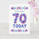 A pretty, floral 70th Birthday Card for a Mother. The numbers are composed of pink, blue and purple flowers. This design is from a handpainted paper collage by Judy Adamson and you can edit the inside text if you wish.