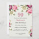Looking for a charming invitation for your upcoming 90th birthday bash? Look no further than our pretty floral invitation! With a lovely design featuring delicate pink, purple, and cream flowers on a sage green background, this customisable invitation is sure to set the perfect tone for your celebration.