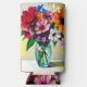 A pretty floral can cooler with an illustration of a colourful vibrant glass vase of flowers done in an ai impasto style oil painting.