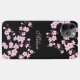 Pretty pink cherry blossoms on a black background. Customise this elegant floral feminine case with your name.