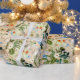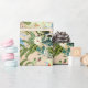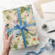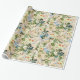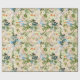 Pretty Floral Chic Gift Wrap with white flowers and pretty green leaves and tan background with accents of blue.