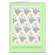 A very pretty Birthday Card with the front cover greeting in Danish and a pattern of pink Roses, creamy white Mock Orange and purple Lavender on a white background with a pale green border, from a handpainted watercolour design by Judy Adamson. The inside is left blank for your own message.