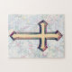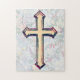 This pretty puzzle features my original digital art of a vintage floral pattern reworked into a slight distressed appearance for the background, with a vintage illustrated light gold cross in front of the pattern. The size of this unique puzzle is 11” x 14”, and in the ‘challenging’ category, however you may size up or down as desired.