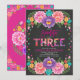 Fiesta themed 3rd birthday invitation featuring vibrant Mexican inspired flowers and patterns. © Blue Bunny Paper