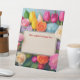 Beautiful and colorful tulips, roses and hydrangeas highlight this personalized text box event acrylic sign.