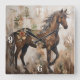 Pretty Floral Horse Painting Square Wall Clock