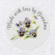 Add a personal touch to your handmade creations with this pretty floral iron on label featuring watercolor purple pansies and customisable arched text.