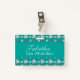 Pretty white and red floral pattern on aqua background. Add personalisation in white script font