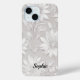 This pretty phone case is adorned with a floral pattern in white, cream and neutral colours, creating a calm and understated look. The case can be personalised with the recipient's name in elegant script typography.