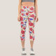 Pretty Floral Print Red Poppies Blue Wildflowers Capri Leggings