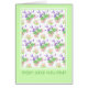A very pretty Birthday Card with the front cover greeting in Turkish and a pattern of pink Roses, creamy white Mock Orange and purple Lavender on a white background with a pale green border, from a handpainted watercolour design by Judy Adamson. The inside is left blank for your own message.