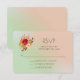 Wedding RSVP card with a pretty wildflower floral design with flowers in red and yellow, contrasted with pink and brown leaves and sprigs. Set on a mint green and light coral pink gradient background.