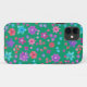 A pretty, floral Case-Mate 'Barely There' to protect your iPhone 5, with a pattern of bright flowers in purple, turquoise, pink and orange on a sea green background from a handpainted paper collage by Judy Adamson. You can easily change the background colour by using the Edit button.