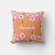 Cute throw pillow for girls. Pink and white flowers with bees flying around. Personalise with your name.