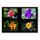 A collection of four pretty flowers, with a black background and the card in blank on the inside.