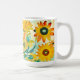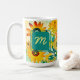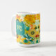 Yellow and turquoise whimsical folk art flowers coffee cup. Add initials in the personalised area.
