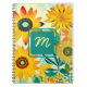 Yellow and turquoise whimsical folk art flowers notebook. Add initials in the personalised area.