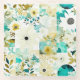 Pretty Folk Art White and Turquoise Flowers Glass Coaster