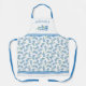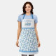 Shabby-chic floral apron with a pattern of forget me nots. Add your name in blue letters.