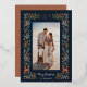 This gorgeous photo holiday card features a detailed foliage frame, which includes leaves, pine boughs, berries, and two cute little deer, along with simple typography at the top reading, "JOY." Both the photo template and card orientation are vertical. Foil accents add a touch of class. Easy to personalise for stylish cards to send to family and friends! The back is a solid matching terracotta orange. Add more photos to the back, leave as is, or lighten the colour (or choose white) so you can easily write personalised notes.