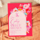 Bold vibrant Pretty garden pink, red and blue floral sweet 16 birthday party featuring bold oversized hand painted abstract flowers with an elegant and modern brush script font on bold red fuchsia. Perfect for spring, summer birthday party!