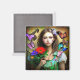 Pretty Girl with Red Flowers and Butterflies Magnet