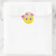 This girly and cute emoji is wearing flowers in her hair and is so pretty!