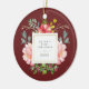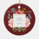 This beautiful ornament features lovely watercolor style pink peonies and grey and green leaves on a burgundy background. A square frame with faux gold foil is in the centre, and you can personalise with your baby's name and any message or year by using the template. (PLEASE NOTE: the gold look is printed on, and this ornament does not contain actual, physical gold foil.) We have used designs from LABFcreations.