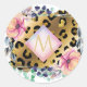 Pretty Girly Leopard Print Gold Pink Monogrammed Classic Round Sticker
