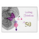 She may be having a bad hair day all in tangles but this fashion model sure looks beautiful with her hair pinned up with chop stick style clips, wearing pink and purple dangling earrings and a pretty purple butterfly. A lovely pretty girly fashionable picture, looking fab at fifty, with gold coloured number 50.