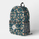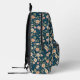 This pretty, stylish backpack features a floral pattern in gold, teal, blush pink, and off-white over a custom colour background (shown in dark navy blue). A monogram text template is included for simple personalisation - customise it or remove the template and circle if no monogram is desired. Great for back to school!