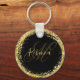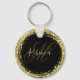 Pretty Gold Glitter Monogram Name Black Glam Key Ring
