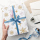 This pretty Christmas gift wrap has a classic style with a simple white background. This elegant pattern features silver and gold snowflakes and gold stars. Perfect Christmas wrapping paper for the whole family.