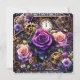 A unique floral gothic themed steampunk wedding invitation. Purple, gold, copper and black hues with metal gears, flowers, roses, keys and other fun steampunk elements.